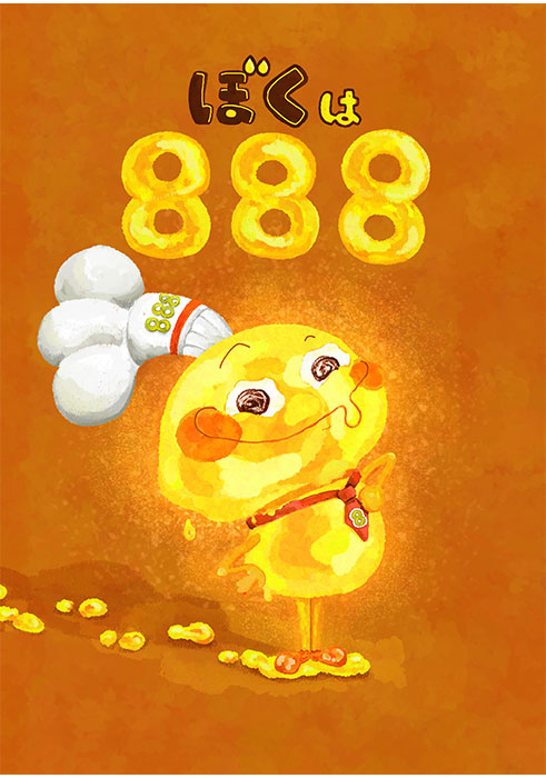 【受賞コメント】この度は選んでいただき、大変うれしく思います。「ぼくは888」のタイトルに惹かれ、物語を読み、今回の応募を決めました。主人公である888の語り口から、明るく素直で人懐っこさのあるキャラクターを考えました。また、物語の舞台であるレストランは、昭和レトロな洋食屋さんのイメージです。この素敵なお話に、自分なりの色を添えられるよう、イラスト制作に努めてまいります。